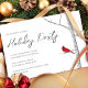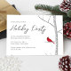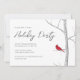 This design features a Christmas holiday simple winter elegant invitation with a watercolor red cardinal nature bird, a scannable WR code for party details and information via an online party website, a stylish trendy holiday party classy, with a classic woodland botanical birch tree, animal forest up north traditional, simple minimalist minimal classic style, simplistic elegance creative botanical, simple holiday party get together, Christmas holiday winter party invite, creative elegant watercolor artwork