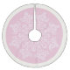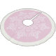 Holiday tree skirt shown in a pinot noir pink colour with a snowflake print and coordinating border colour in ivory.
