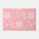 Holiday doormat is shown in a festive winter snowflakes print design.