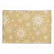 Pillowcase is shown in gold with a festive holiday Christmas snowflakes print.