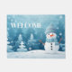 This holiday doormat is shown with a Christmas holiday snowman scene print.