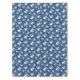 This festive holiday table cloth features a pair of cartoon snowmen, one dressed in a stocking cap and the other in a top hat, and both with neck scarves and mittens. The snowman pair is repeated on the surface on a background of blue, with flurries of light blue and cream coloured snowflakes swirling around them. Cute! *Thanks to Real Deal Clipart for the clipart used to create this design.