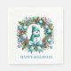 These standard style luncheon napkins are anything but standard, shown with a very cute festive snowman wreath art print.