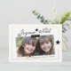 Beautiful french holiday card with photo place holder with the words "Joyeux Noël". Gold, black and white colours with script font with gold frame on a white background with 3D illusion of photo taped to the card. Christmas Photo Holiday Card. Pretty stars confetti pattern on back in gold and white. Elke Clarke © More holiday photo card and colours designs available in my shop at www.zazzle.com/monogramgallery