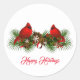 This small size round shape sticker is shown with a holiday cardinals print.