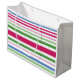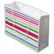 Bright holiday stripes adorn this fun gift bag. Design by artist Becky Volk
