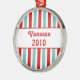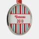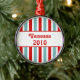 Fun and simple Holiday Stripes Round Christmas Ornament with red and light blue stripes. This customisable ornament becomes an instant keepsake when you add a name and a personalised greeting!