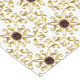 Holiday table runner is shown with a gold embellishment and faux red stone print.
