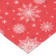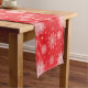 Holiday table runner is shown with a festive snowflakes print.