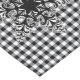 This holiday table runner is shown in a black and white country gingham look with snowflake accents.