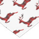 This Christmas holiday table runner is shown with a festive Christmas plaid reindeer print design.