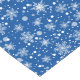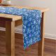 Holiday table runner is shown with a festive snowflakes print.