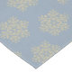 This table runner is shown with a Blue Fog background colour and has a festive holiday gold snowflakes print design.