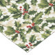 Holiday table runner is shown with a festive holiday holly print design.