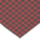 This Christmas holiday table runner is shown with a black and red plaid print design.