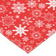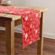 This table runner is shown in a festive red and white snowflakes print.