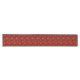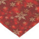 This Christmas holiday table runner is shown with a red background colour and has a festive Christmas snowflakes print design.