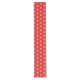 This holiday table runner is shown in a red colour with a festive Christmas snowflakes print.