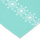 This Christmas holiday table runner is shown with a aqua blue background colour and has a festive Christmas snowflakes print design.