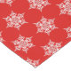 This holiday table runner is shown in a red colour with a festive Christmas snowflakes print.