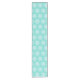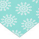 This Christmas holiday table runner is shown with a aqua blue background colour and has a festive Christmas snowflakes print design.