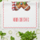 Holiday kitchen towel is shown with a cute gingerbread man print.