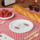 Rustic and modern holiday theme paper plate featuring watercolor illustration of winter greenery with orange and spice.
