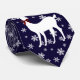 Festive Holiday Tie: White Reindeer Silhouette with Crimson Red Bow, on a background of white snowflakes on a navy blue tie; Classic colours will match any holiday outfit [if desired, change the background colour via the customise button, to change tie colour from navy to any other colour of your choosing!]