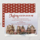 Nostalgic-look snowy holiday village with Santa Claus and a snowman "Christmas Open House" design. Great for personal or business open houses. All text is editable.