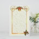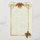 Elegant gold scroll header, holiday bell and holly. Gold edge trim and Holly sprig with berries accent. Background is lightly textured.