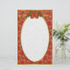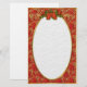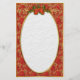 Elegant red Poinsettia stationery with gold scroll header, and green holly leaves with red bow.