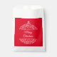 Holiday treat favour bag shown in white with a red snowflakes ornament print.