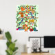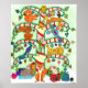 Decorate your walls in style for the holidays with this unique, colourful folk art poster. The Tree of Life, a tree with many branches, is an archetypal recurring theme in many world cultures signifying the interconnectedness of all life on our planet. It appears in artwork, theology, philosophy and mythology worldwide. In this one-of-a-kind whimsical version, this tree of life, its trunk and branches made of candy cane, is covered with colourful leaves and festive holiday ornaments. Numerous animals inhabit the tree's branches and sit in the winter snow at its base along with numerous, beautifully wrapped presents. The animals include four cats, a squirrel, two birds, a lizard, two bunny rabbits, and a lovely red fox.