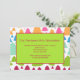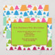 A delightful invitation featuring rows of trees, in cheerful colours, overlaid with a framed green panel. Suitable for any holiday party. The card is easy to customise with your wording, font, font colour and choice of six paper types.
