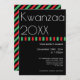 A vertical invitation for a Kwanzaa celebration. The invite is red, black, and green with white letters. Customise the text, add this invitation to your cart, and enjoy your Kwanzaa event.