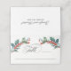 This holiday place card has a pair of watercolor holly springs in bright shades of red and green. Elegant script flourishes test is used on the front of the place card with space for you to write in guest name and table number. The back of the place card has optional text with the bride and grooms names and wedding date. You can personalise this text any way you wish. If you prefer not to use text on the back of the place card, simply delete the sample text shown in the text template.