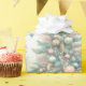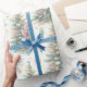 A charming roll of Christmas wrapping paper features beautifully illustrated trees adorned with pastel ornaments, berries, and stars, setting a festive mood for the holiday season.