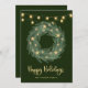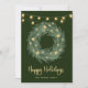 Holiday Wreath with Gold String Lights on Green