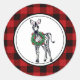 Holiday Zebra illustration, buffalo plaid Classic Round Sticker