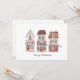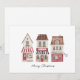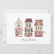 Christmas card showcasing charming watercolor illustrations of festive gift shops, paired with a matching envelope.