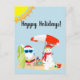 Holidays Tropical Beach Snowman Santa Christmas Postcard