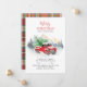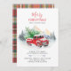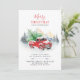 What better way to let your friends and family know about your new holiday address and wishing them a very Merry Christmas with this classic red truck in the snow with a Christmas tree on the back budget announcement card to set the mood for what's to come.