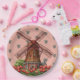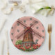 A Cute Holland Windmill Pink And Grey Folk Art Tulip Paper Plate For Any Type Of Occasion