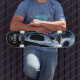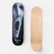 Hollow-eyed phantom witch etching on blue-black skateboard