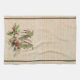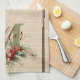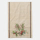Holly and berries linen look personalised tea towel