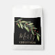 Party favour or treat bags for holiday gifts, party favours or treat bags feature elegant holly and berries with your message in chic lettering in any colour (we show gold) and on any colour background (we show black.) Choose WHITE, ECRU OR KRAFT bags. MATCHING items in our store.
