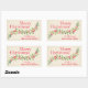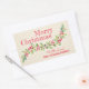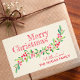 Personalized holiday Christmas RECTANGLE stickers with a stylish, modern watercolor of green holly and red berries on a pale ivory stripe background with your greeting and info in chic lettering. MATCHING items in our store.