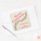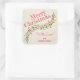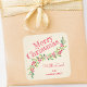 Personalized SQUARE stickers with a stylish, modern watercolor of green holly and red berries on a pale ivory stripe background with your greeting and info in chic lettering. **ALL STICKER SHAPES are already done for you. MATCHING items in our store.