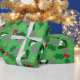 A scattering of holly and mistletoe with some stars and spirals fill this holiday wrapping paper with botanical joy.