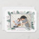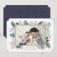 Modern and elegant holiday card design by Redwood & Vine features your favourite horizontal photo framed by a midnight blue border with chic botanicals peeking out at the edges, including hunter green pine boughs, sage green leaves and bright red berries. Personalise with your custom message (shown with "merry christmas") and your name(s) in classic and stylish block and italic lettering.
